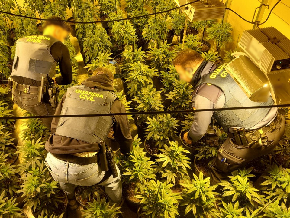 La Guàrdia Civil ha desmantellat a Elda una plantació de cànnabis després d’interceptar un cotxe amb 812 plantes